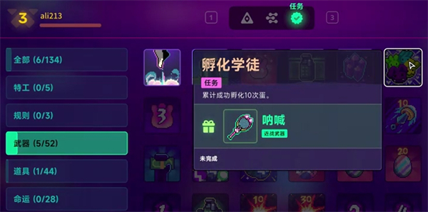 累計(jì)成功孵化10次蛋,完成后獲得近戰(zhàn)武器吶喊。