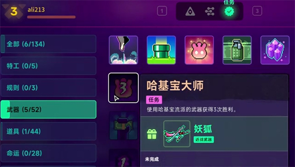 使用哈基寶流派的武器獲得3次勝利,完成后獲得近戰(zhàn)武器妖狐。