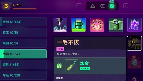 單局擁有100金幣,完成任務(wù)獲得近戰(zhàn)武器炫金。