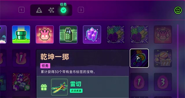 累計(jì)獲得30個(gè)帶有金幣標(biāo)簽的寶物,完成任務(wù)獲得近戰(zhàn)武器雷切。