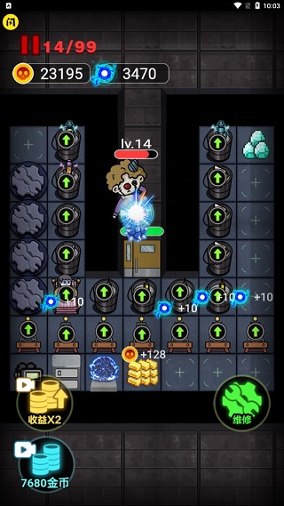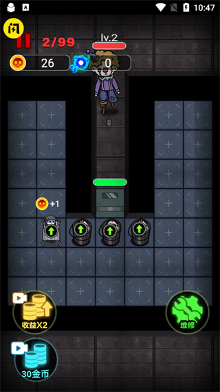 游戲中唯一的輸出手段,每升一級(jí)輸出會(huì)翻一倍,在于多而不在于精!炮臺(tái)一定要造很多,而不要照著一個(gè)炮臺(tái)一直升級(jí),同時(shí)要注意炮臺(tái)的攻擊距離,避免造太遠(yuǎn)打不到鬼的情況。