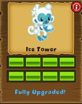 冰凍塔,短時(shí)間內(nèi)冰凍周?chē)臍馇?,被冰凍的氣球無(wú)法移動(dòng)但也無(wú)法被飛鏢攻擊。