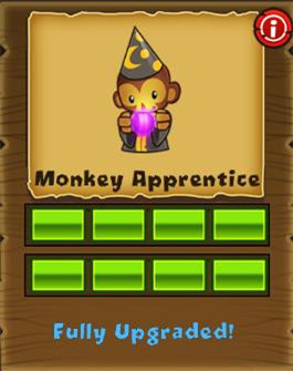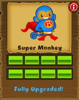 (每發(fā)飛鏢可以攻擊2個(gè)氣球)→(每發(fā)飛鏢可以攻擊3個(gè)氣球)→(每次可以發(fā)射三枚飛鏢)→(增加“變身”技能,把攻擊范圍內(nèi)的飛鏢猴變成超猴)