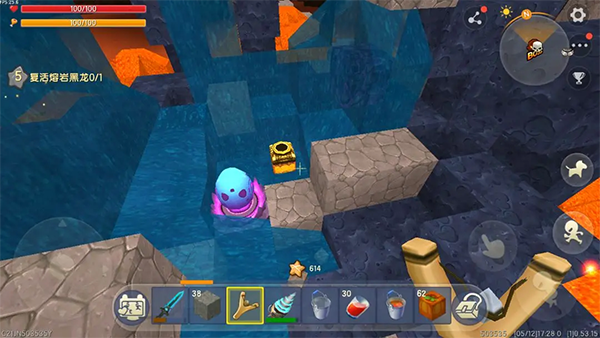 熔巖黑龍會(huì)向你噴射巖漿,巖漿遇水會(huì)變成黑曜石和石頭在你四周型成堡壘,用鉆石鎬鑿個(gè)孔就可以用遠(yuǎn)程武器還擊了。
