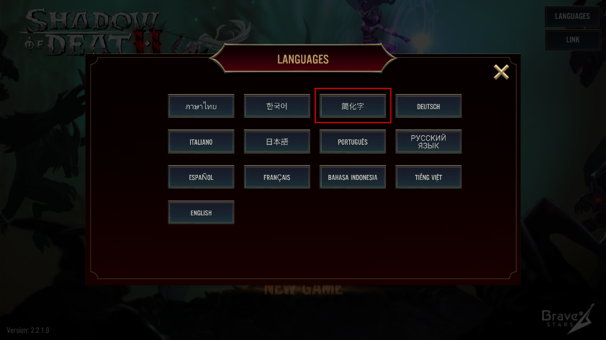 1、下載并打開游戲后,玩家點擊右上角的語言可以設置選擇“簡化字”即可切換中文。