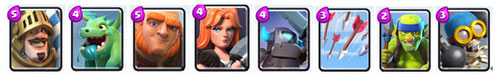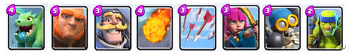 卡組特點(diǎn):均衡型卡組,圣水消耗低,下兵節(jié)奏快,陣容轉(zhuǎn)換時(shí)間短;攻守能力均衡,但都不突出;對(duì)時(shí)機(jī)把握、操作水平要求較低;較懼怕對(duì)方王子偷家之類的戰(zhàn)術(shù)。