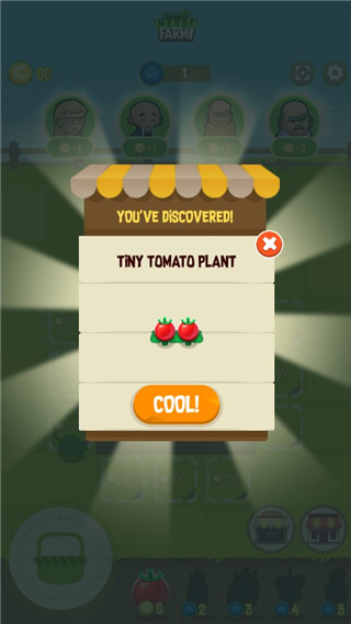 1、同于普通農(nóng)場(chǎng)游戲,采用合并機(jī)制種植收獲水果蔬菜,售賣后擴(kuò)建農(nóng)場(chǎng)。