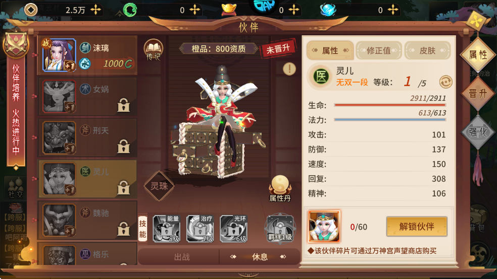 被動(dòng)技能:本場(chǎng)戰(zhàn)斗,靈兒存活期間友方全體增加12%的治療效果