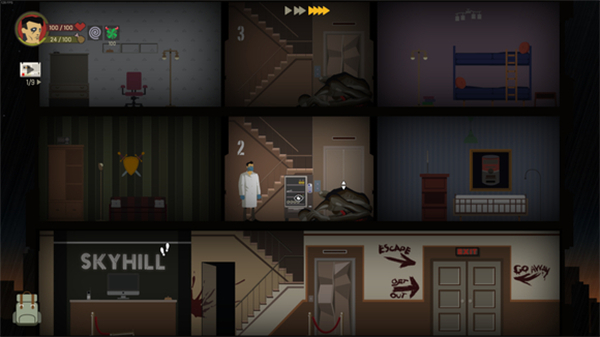 3、每層樓都有樓梯和兩個房間三塊區(qū)域,我們需要一一探索,找到資源和線索。