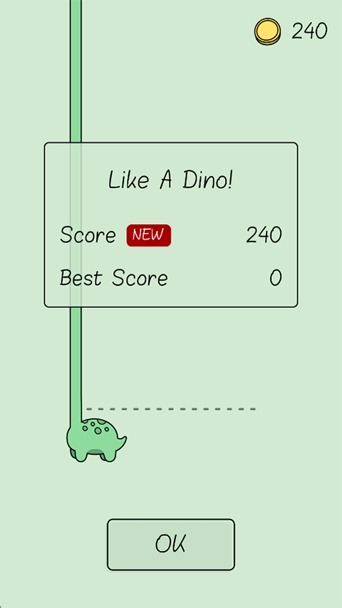 2、左右滑動(dòng)控制小恐龍接住上方掉落的長(zhǎng)條,接住越多,小恐龍的脖子越長(zhǎng),同時(shí)分?jǐn)?shù)也越高;