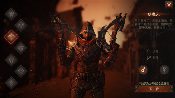 獵魔人是無情的俠義之士,會(huì)從遠(yuǎn)處發(fā)起進(jìn)攻;他們是經(jīng)過訓(xùn)練的惡魔獵人,卻身負(fù)悲慘的過去——他們的家人被烈焰地獄的惡魔所害。獵魔人用錘煉的戒律積蓄能量,一往無前地發(fā)起進(jìn)攻,直到他們的獵物任由自己擺布。
