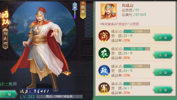 說到培養(yǎng)大臣的資源,無非就是銀兩、資質(zhì)果、書籍,名臣升級(jí)需要用到銀兩,戰(zhàn)斗力的提升則需要資質(zhì)果和書籍,這些都是稀缺的資源。那么,應(yīng)該怎樣把這些資源最大化運(yùn)用,用現(xiàn)有的資源創(chuàng)造最大的國(guó)力值呢?