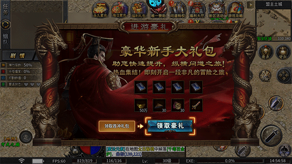 3、首次進(jìn)入送豪華新手大禮包,助你快速提升,縱橫問道之旅,點(diǎn)擊領(lǐng)取豪禮并進(jìn)入游戲;