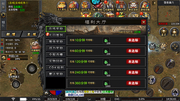 6、點(diǎn)擊屏幕右上角的福利大廳,這里可以在完成某些任務(wù)后領(lǐng)取福利道具;