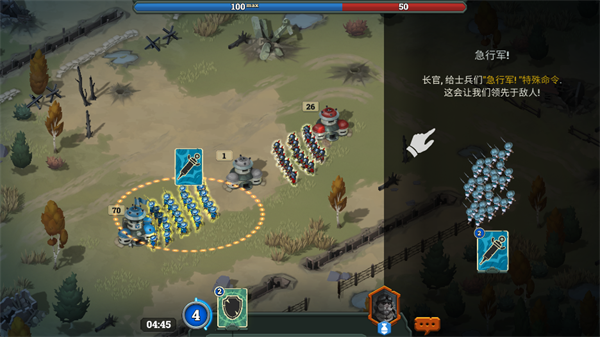 5、當(dāng)雙方同時(shí)爭(zhēng)奪同一地堡時(shí),可發(fā)動(dòng)“急行軍”快速突襲,搶先占領(lǐng)并借助地堡的防御加成,抵御后續(xù)敵軍的反撲。