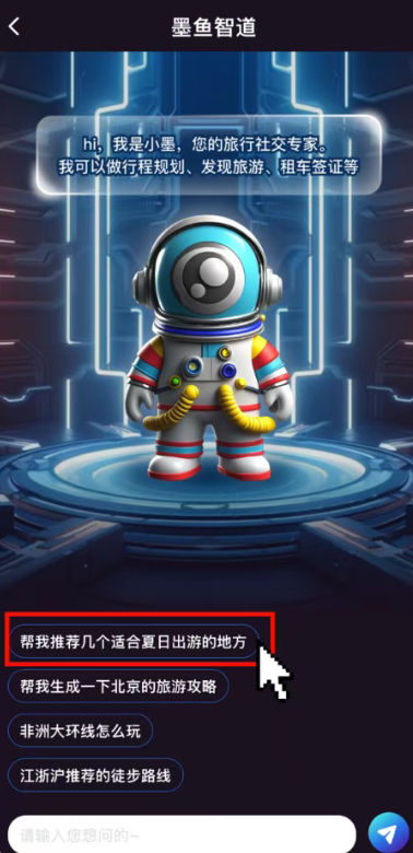 2、進(jìn)入頁(yè)面之后,可以看見(jiàn)此次更新推出的「墨魚(yú)智道」AI助手,在底部對(duì)話框內(nèi),手動(dòng)輸入你的問(wèn)題,也可以直接點(diǎn)擊系統(tǒng)推送的問(wèn)題。