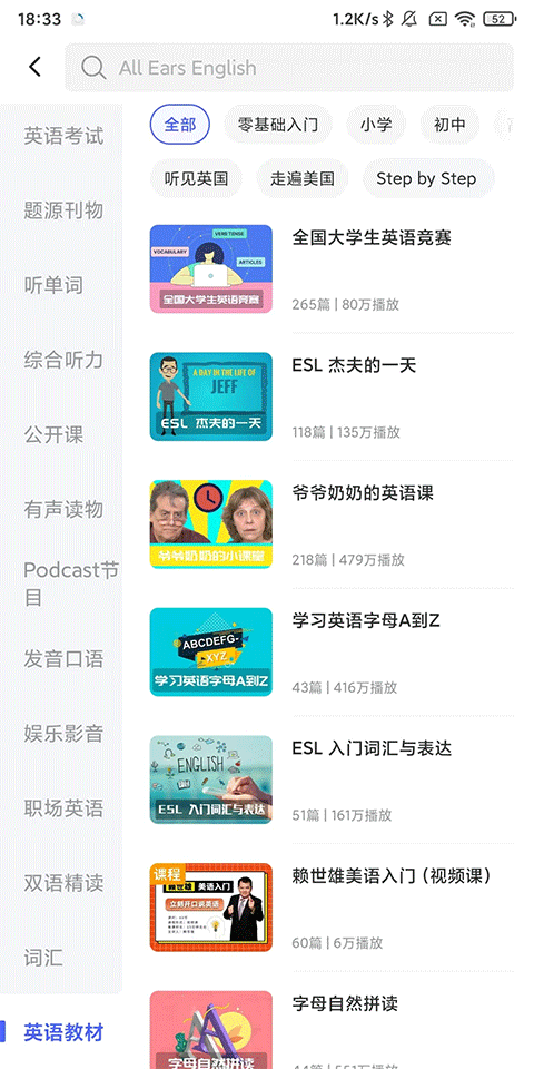 4、興趣學(xué)習(xí):有聲讀物、名人演講、公開課、少兒英語(yǔ)、影視英語(yǔ)等豐富資源。