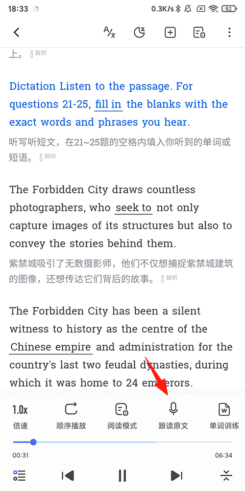 3、點(diǎn)擊【跟讀原文】;