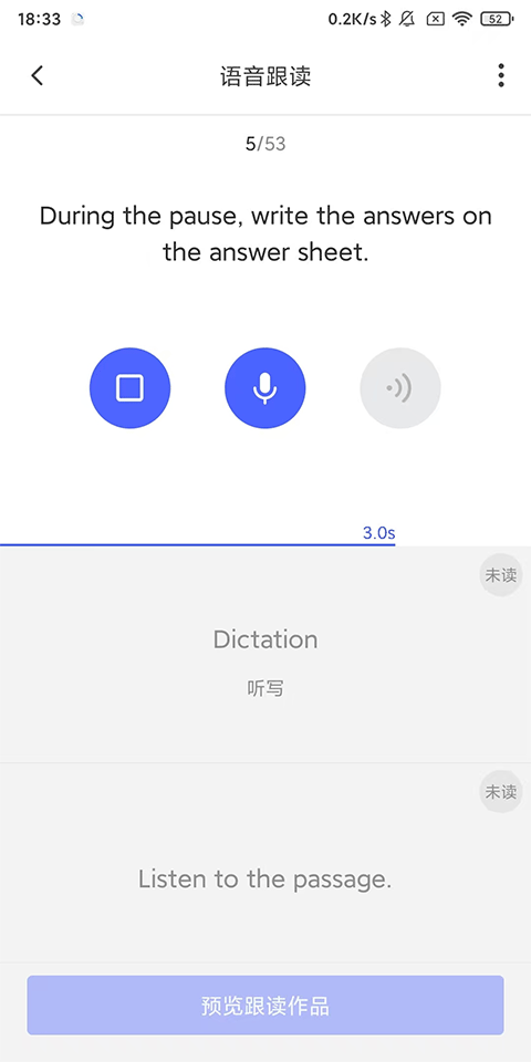 5、點(diǎn)擊【預(yù)覽跟讀作品】,開始跟讀吧!