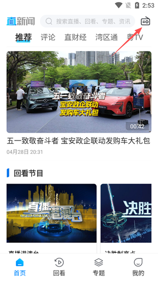 1、打開直新聞官方版App,點擊右上角的【收音機圖標】