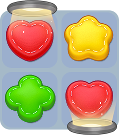 紐扣被線連接在一起,它們成組出現(xiàn)。在紐扣旁匹配元素或引爆加速道具可以拆除紐扣上的線,從而解開紐扣。當(dāng)一串紐扣上的一顆被解開時(shí),整串紐扣都會被消除。仔細(xì)觀察每顆紐扣屬于哪一組,這會幫助你更好地解開它們。