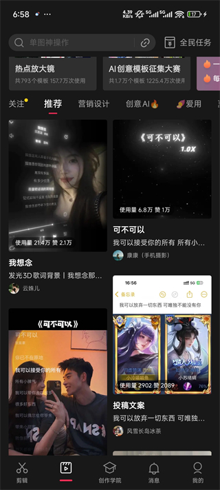 4、如果你不知道剪什么也可以點(diǎn)擊剪同款這里有各種各樣的模版供你使用