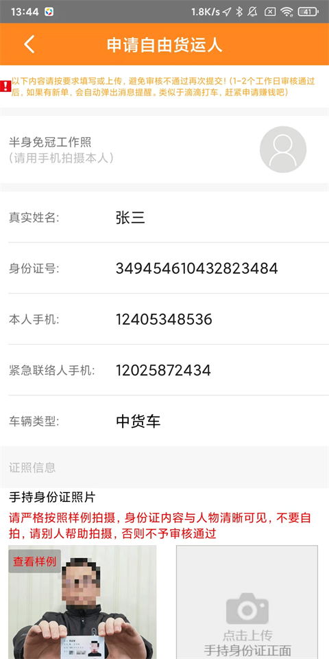 5、完成一系列信息填寫后點擊立即提交,等待平臺審核通過后即可開始接單拉貨。