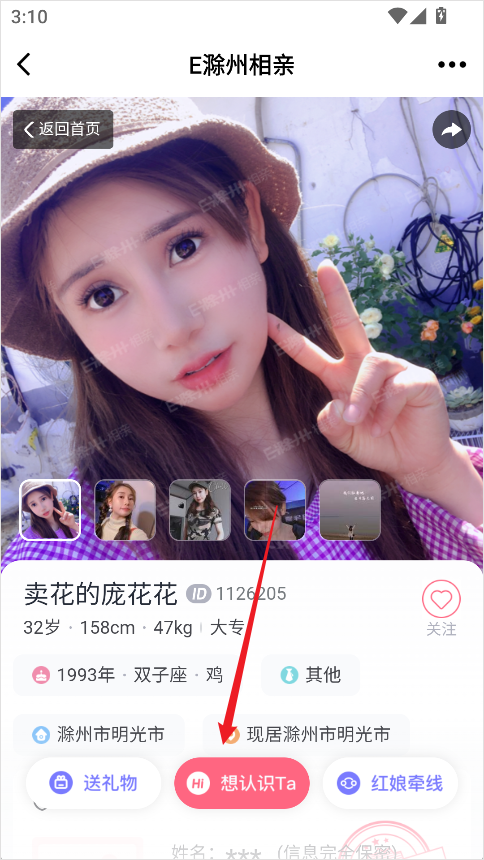 5、最后點(diǎn)擊「想認(rèn)識(shí)TA」按鈕,即可發(fā)起聯(lián)系,邁出脫單第一步!